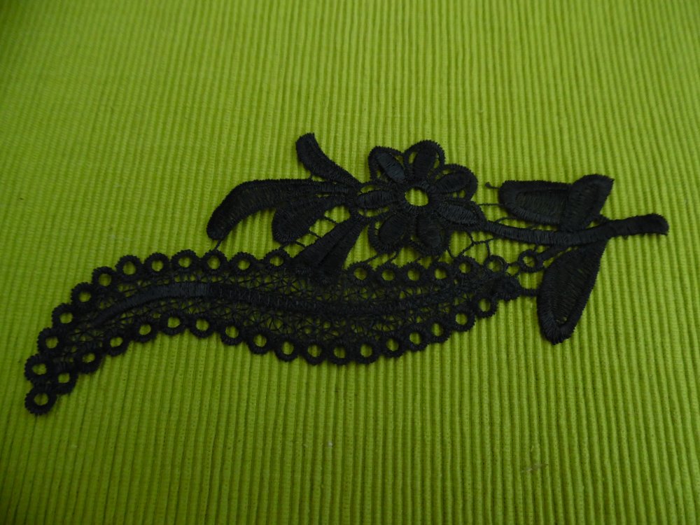 Applique fleur noire 23.5x9cm guipure coton enduit