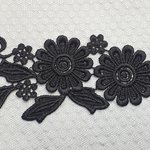 Applique fleur noire 25.5x8cm guipure coton enduit dentelle AN014B