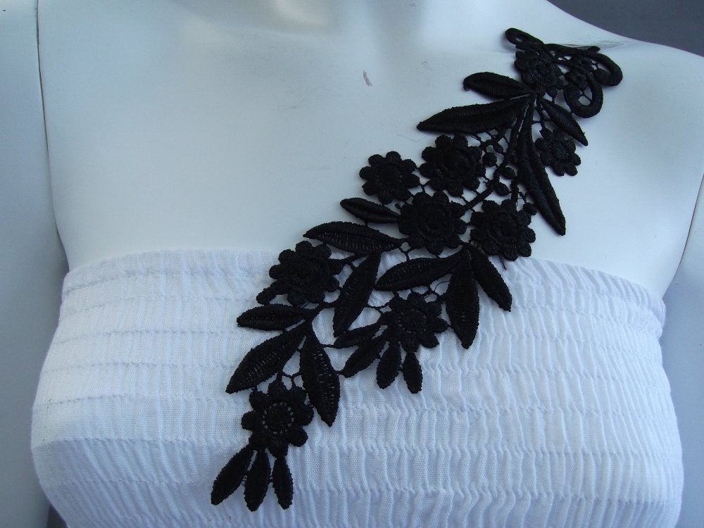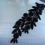Applique fleur noire 27x7.5cm guipure coton enduit