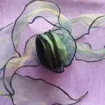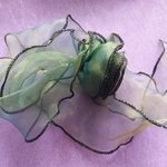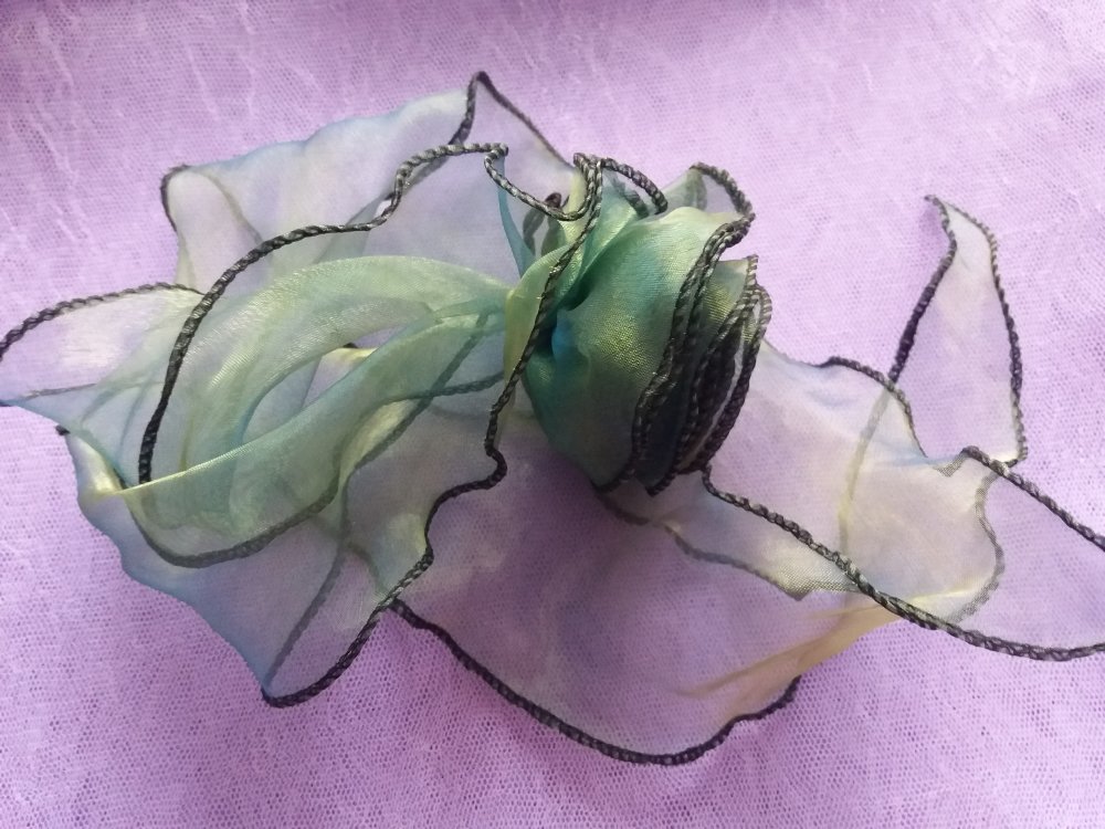 Grosse fleur en organza bleu/vert irisé avec rubans