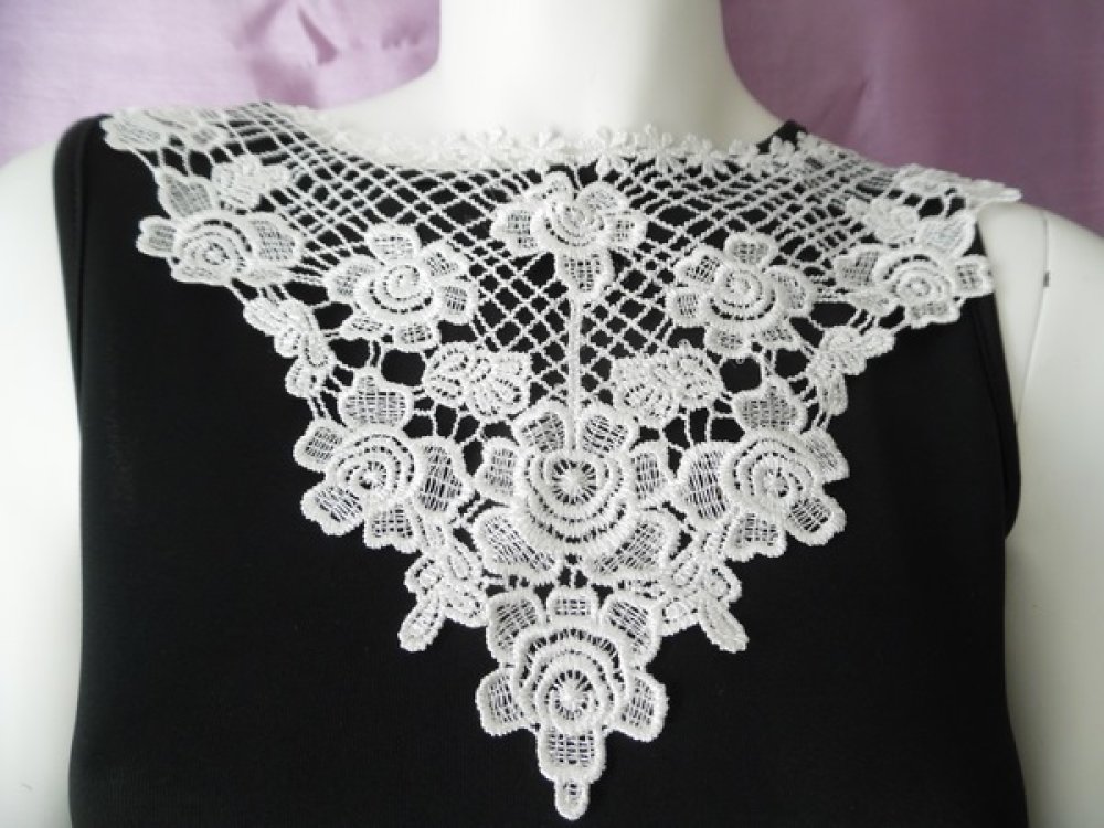 Plastron blanc guipure encolure coton enduit GPB3 Largeur la plus large 33cm Longueur du bord supérieur au bas central 30cm