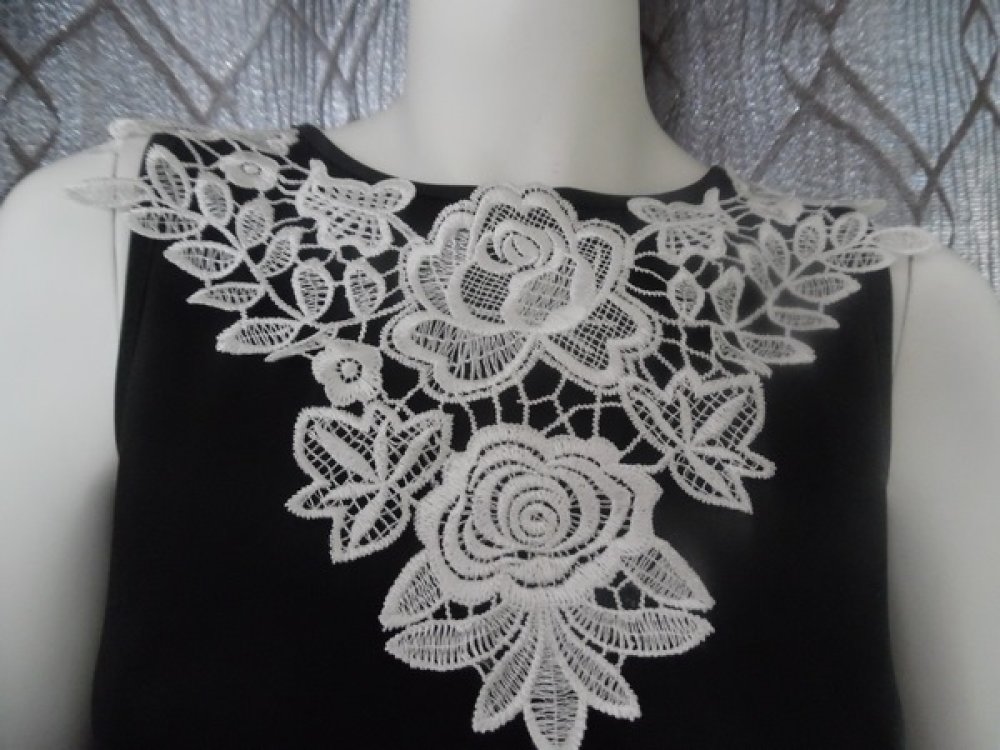 Plastron blanc guipure encolure coton enduit GPB43 Largeur la plus large 33cm Longueur du bord supérieur au bas central 34cm