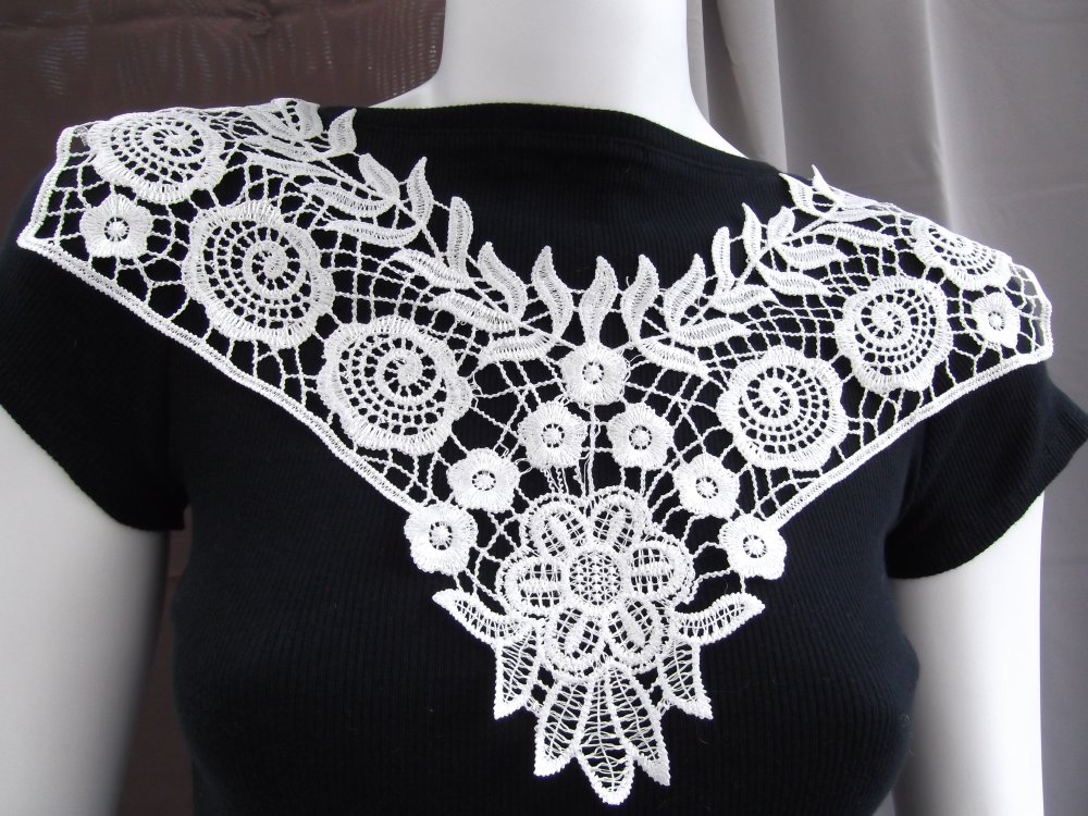 Plastron blanc guipure encolure coton enduit GPB24 Largeur la plus large 18.5cm Longueur du bord supérieur au bas central 38cm