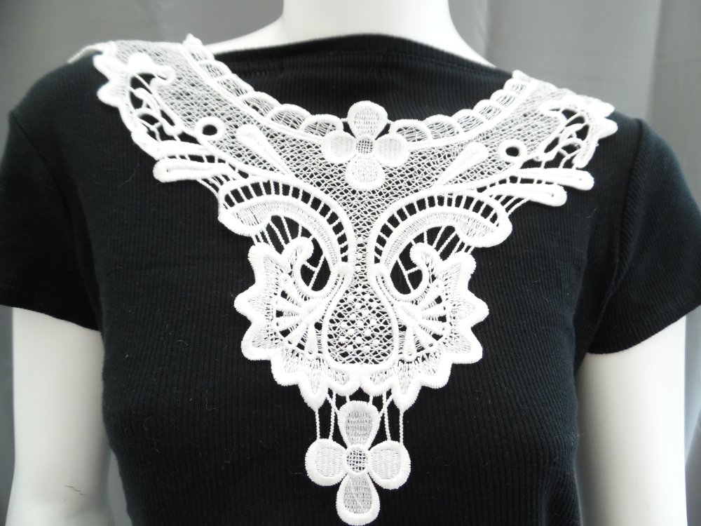 Plastron blanc guipure encolure coton enduit GPB48 Largeur la plus large 21cm Longueur du bord supérieur au bas central 38cm