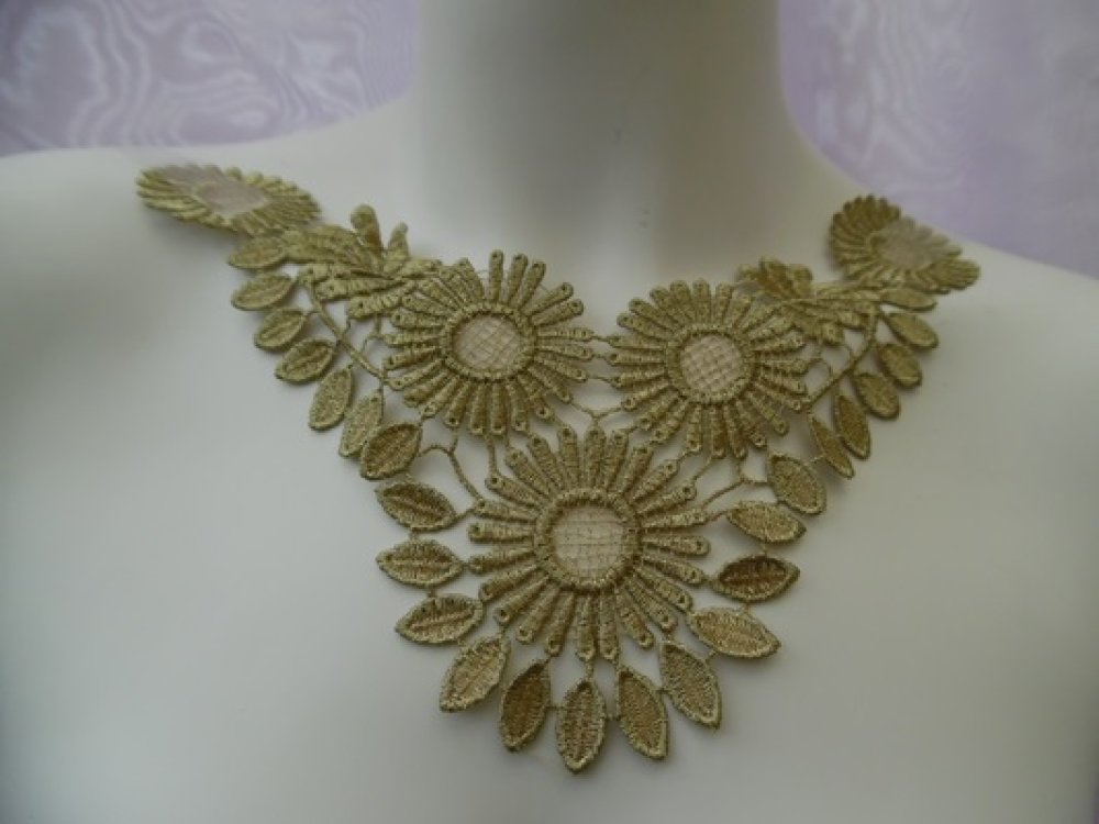 Plastron guipure doré fleur encolure dentelle fil doré GPD12