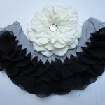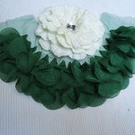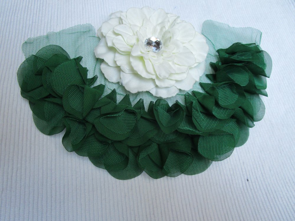 Plastron vert encolure froufrou organza sur voile tulle PF06 Largeur à la partie la plus large 7cm Longueur du bord supérieur au bas central 28cm.
