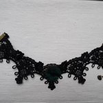 ARTICLE: Ras du Cou Collier TC13 Guipure Dentelle Avec Fleur Froufrou Vert Foncé sur Support de cabochon Bronze