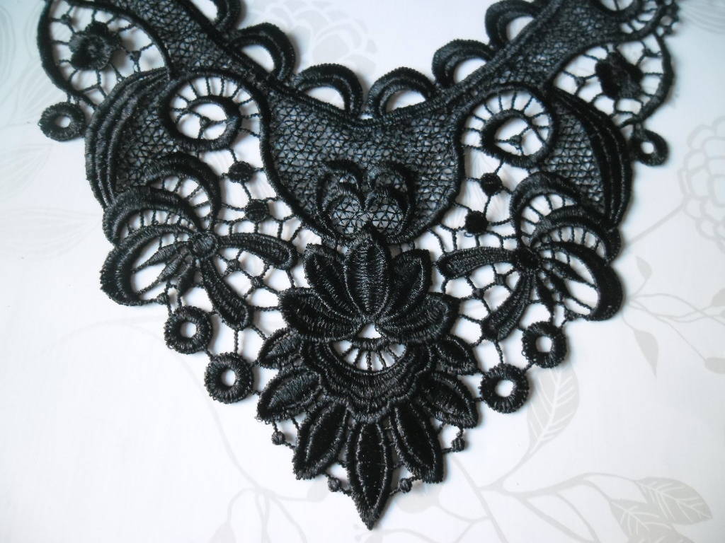 cette très belle guipure col dentelle floral Venise ton noir à coudre en polyester.
