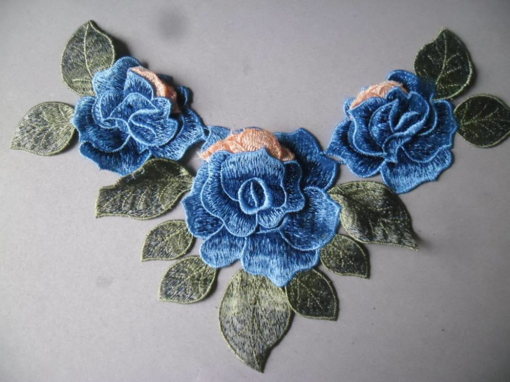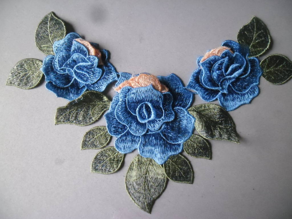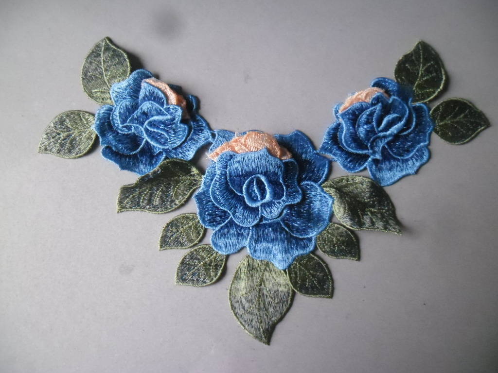 cette très belle guipure col encolure en dentelle motif fleur en relief ton bleu en polyester à coudre.