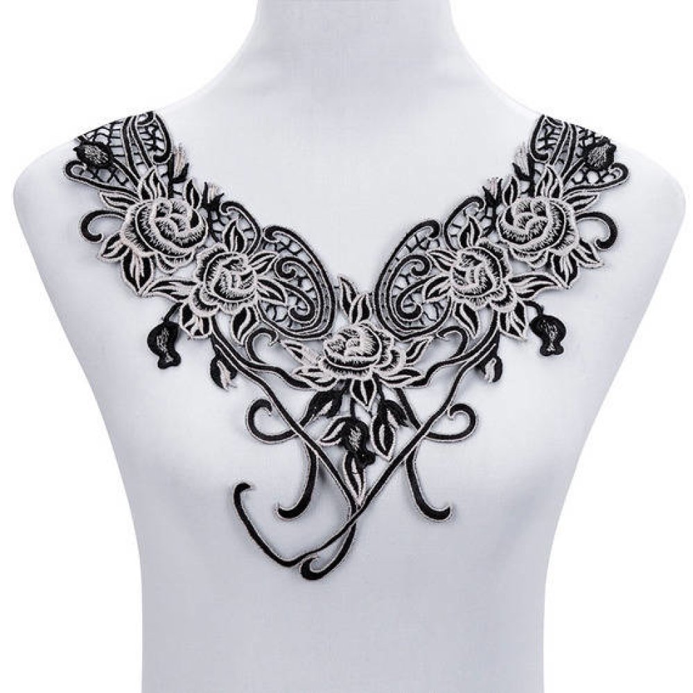 cette magnifique guipure dentelle floral Venise ton noir/beige à coudre en polyester.