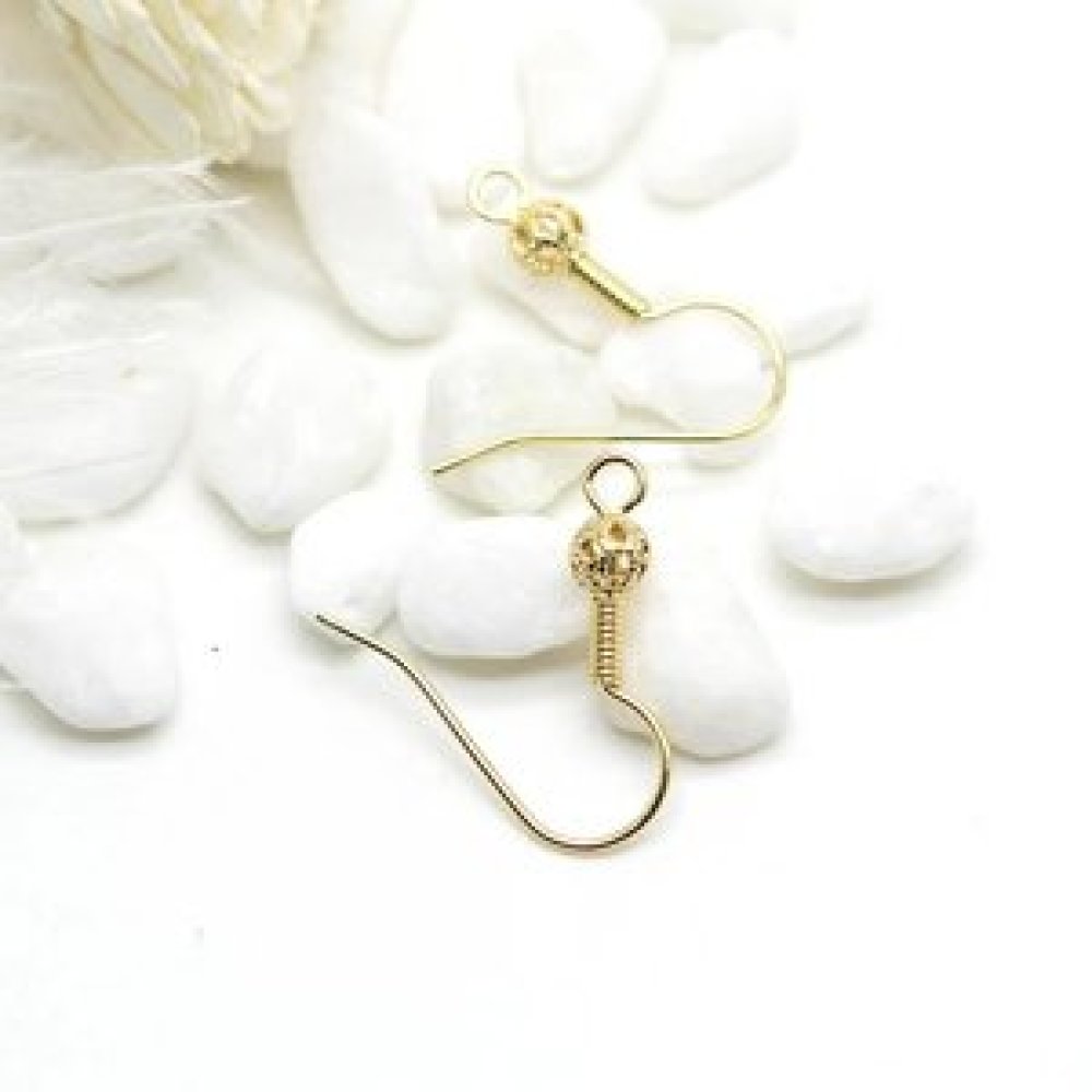une paire de Crochets de boucle d'oreille plaqués or 14 carats ou argent 925, boule de fleurs