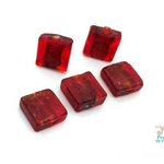 5 perles carrées en verre rouge (pv687)
