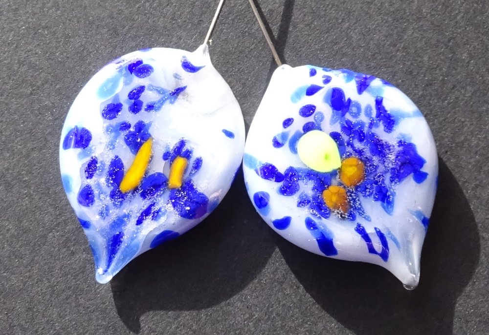 Bouquet de perles filées à la main par la créatrice, avec du verre importé de Murano (verre sodocalcique). Ce verre d'une qualité idéale présente une transparence incroyable: il est utilisé par les verriers d'art pour réaliser les plus belles pièces.