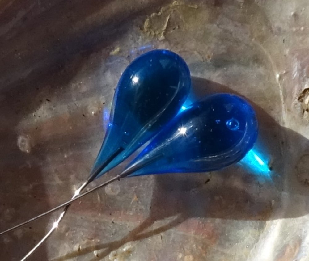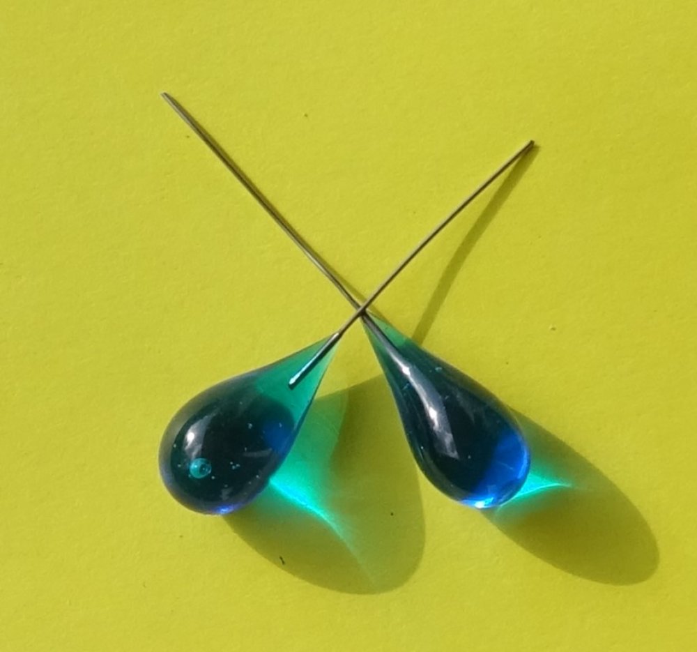 Bouquet de perles filées à la main par la créatrice, avec du verre importé de Murano (verre sodocalcique). Ce verre d'une qualité idéale présente une transparence incroyable: il est utilisé par les verriers d'art pour réaliser les plus belles pièces.