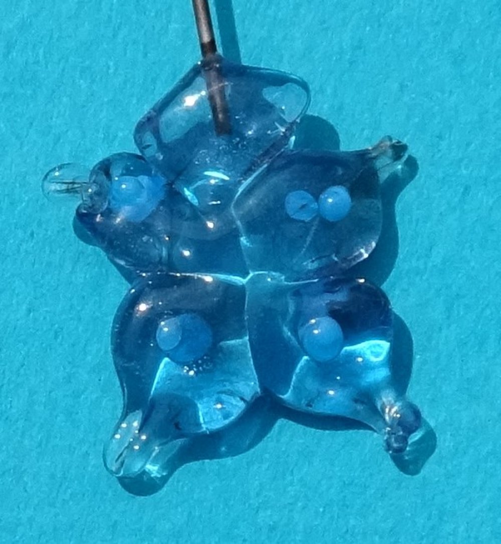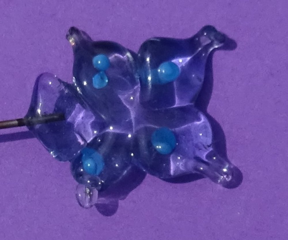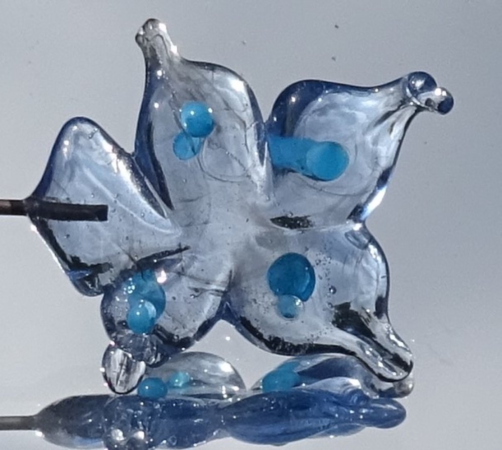 Bouquet de perles filées à la main par la créatrice, avec du verre importé de Murano (verre sodocalcique). Ce verre d'une qualité idéale présente une transparence incroyable: il est utilisé par les verriers d'art pour réaliser les plus belles pièces.