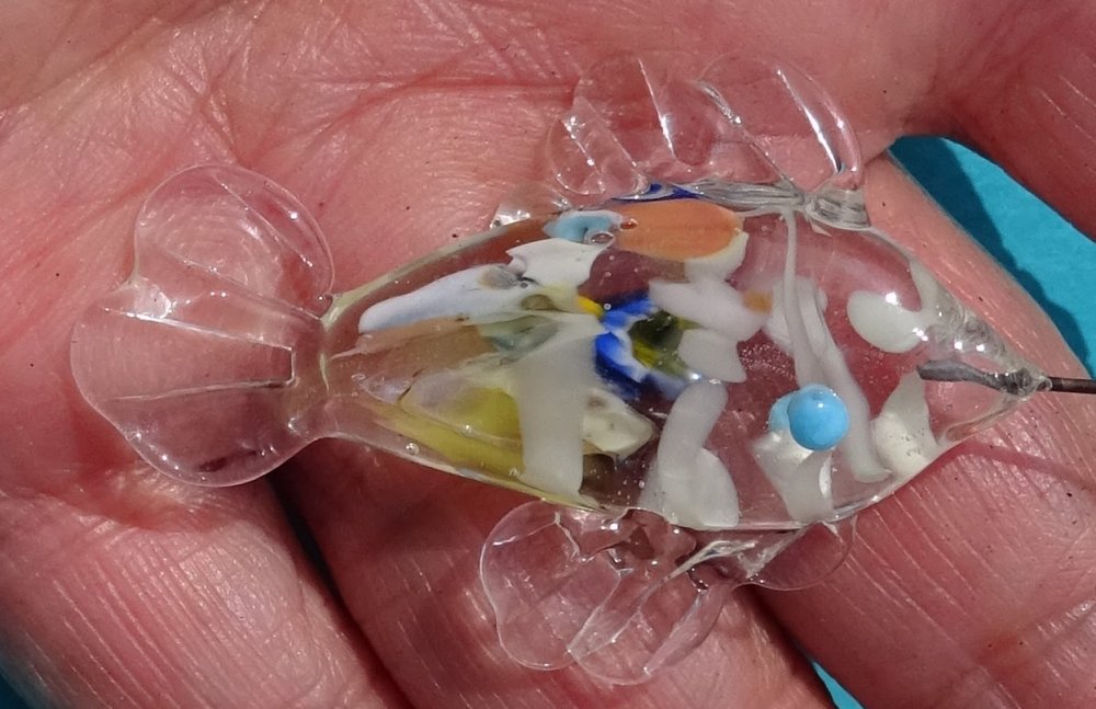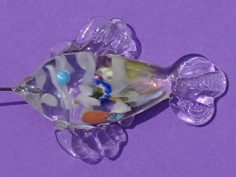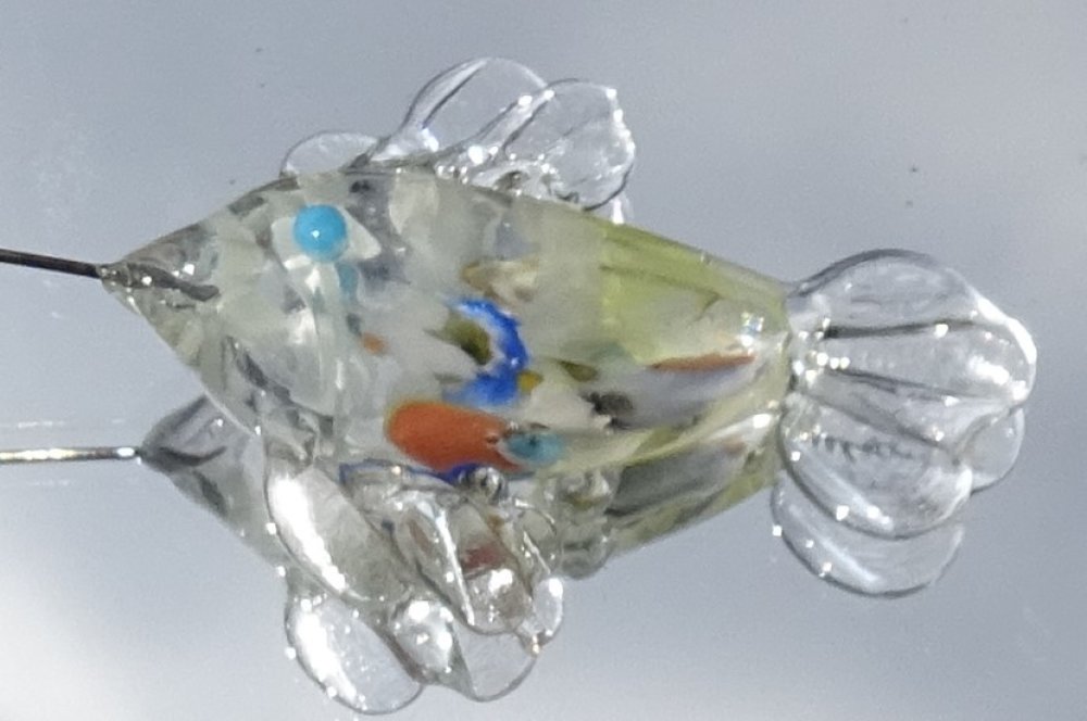 Bouquet de perles filées à la main par la créatrice, avec du verre importé de Murano (verre sodocalcique). Ce verre d'une qualité idéale présente une transparence incroyable: il est utilisé par les verriers d'art pour réaliser les plus belles pièces.