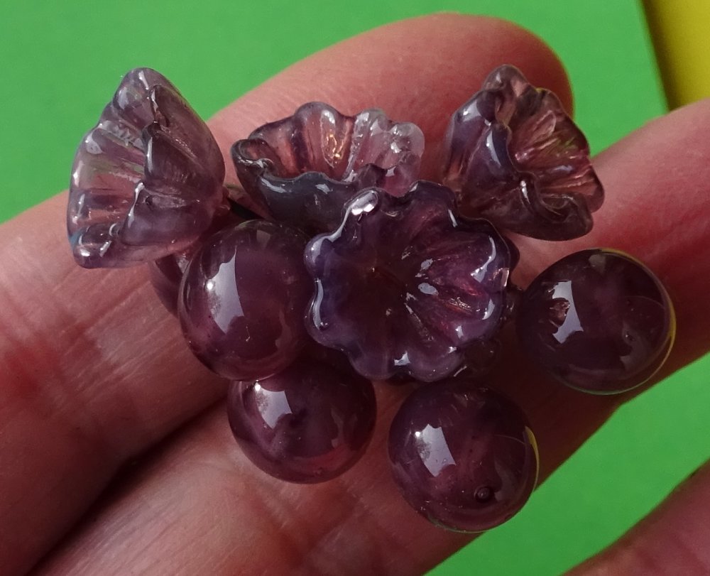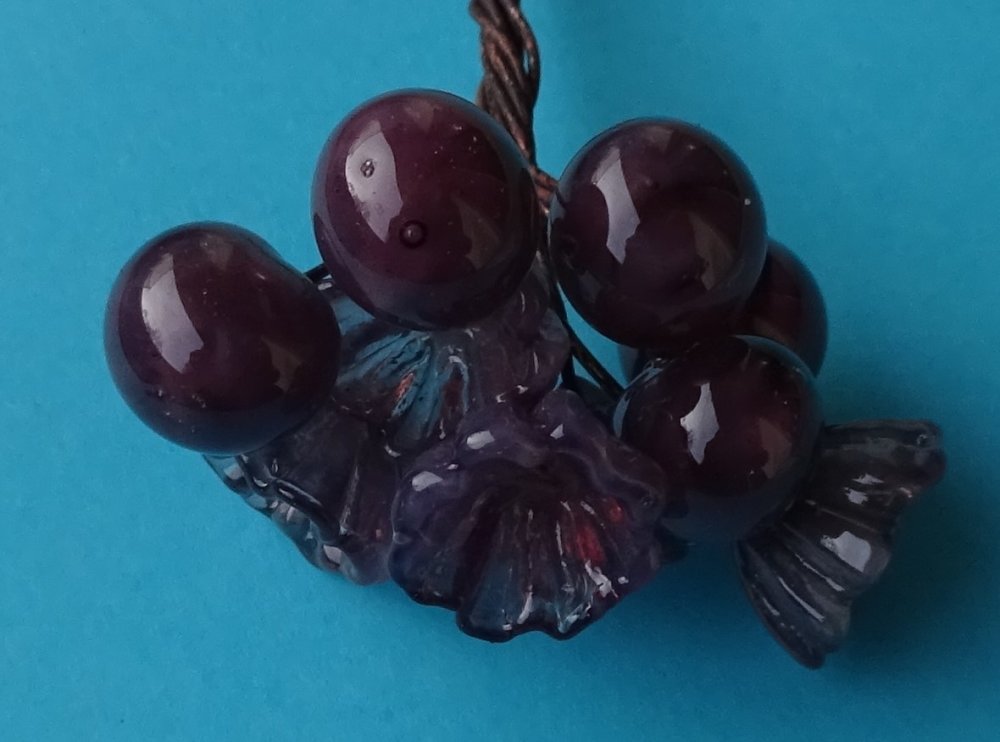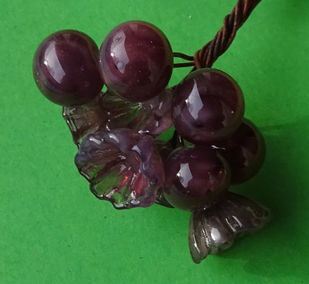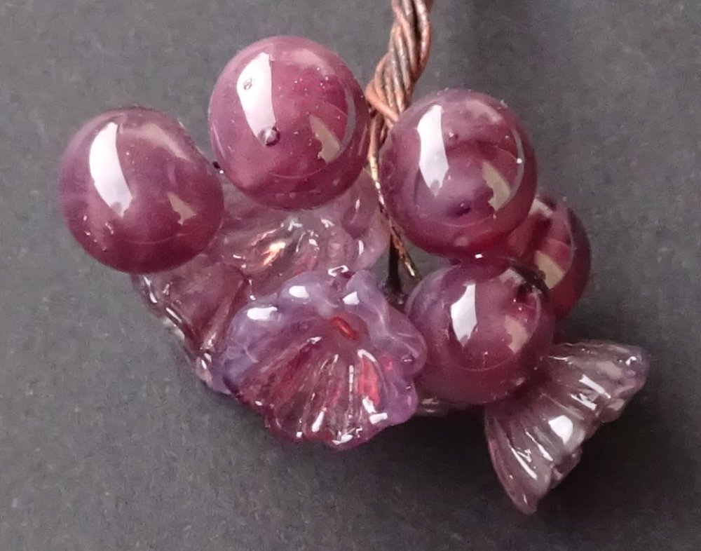 Bouquet de perles filées à la main par la créatrice, avec du verre importé de Murano (verre sodocalcique). Ce verre d'une qualité idéale présente une transparence incroyable: il est utilisé par les verriers d'art pour réaliser les plus belles pièces.