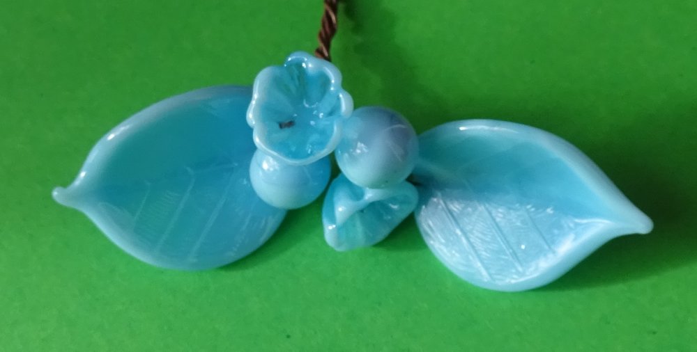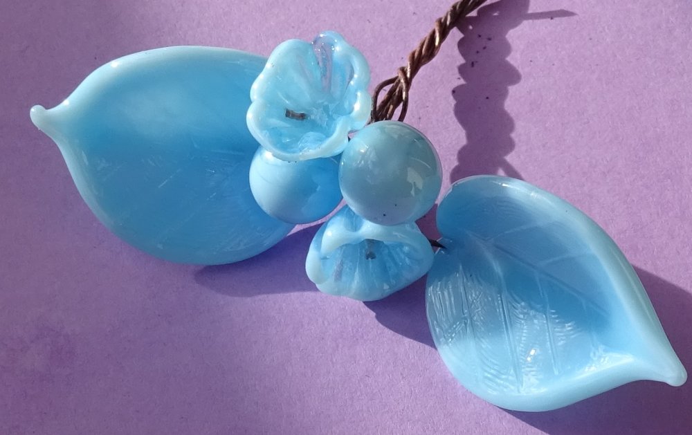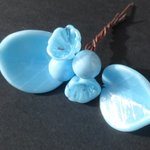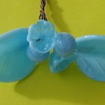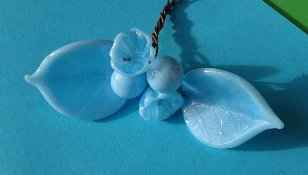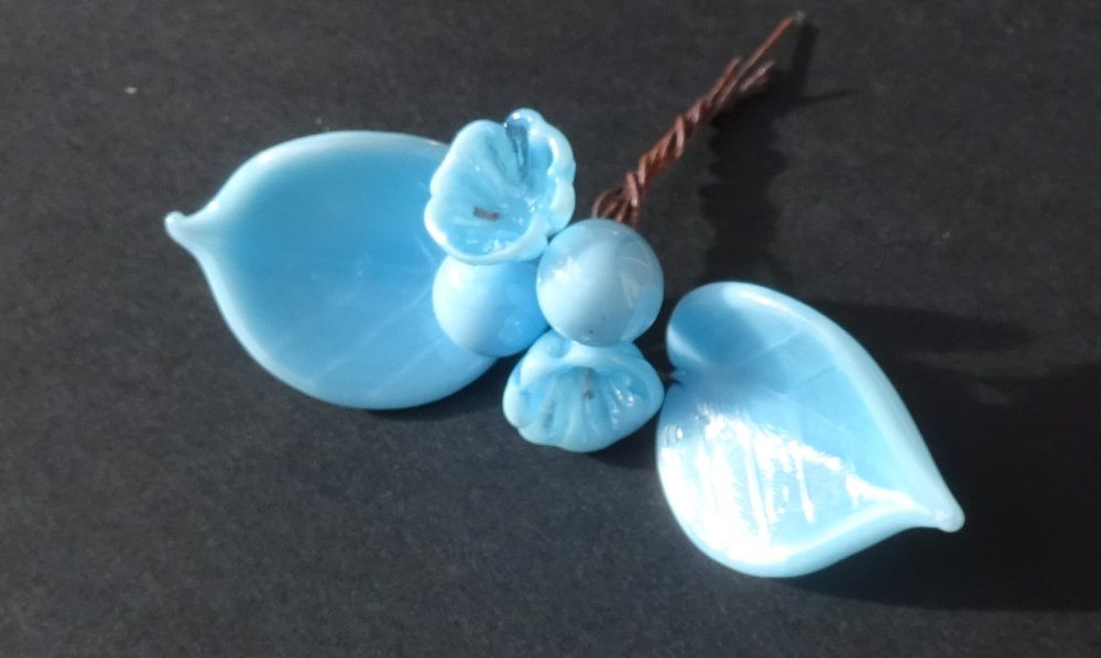 Bouquet de perles filées à la main par la créatrice, avec du verre importé de Murano (verre sodocalcique). Ce verre d'une qualité idéale présente une transparence incroyable: il est utilisé par les verriers d'art pour réaliser les plus belles pièces.