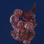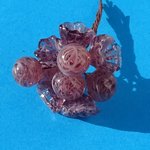 Bouquet de perles filées à la main par la créatrice, avec du verre importé de Murano (verre sodocalcique). Ce verre d'une qualité idéale présente une transparence incroyable: il est utilisé par les verriers d'art pour réaliser les plus belles pièces.