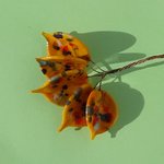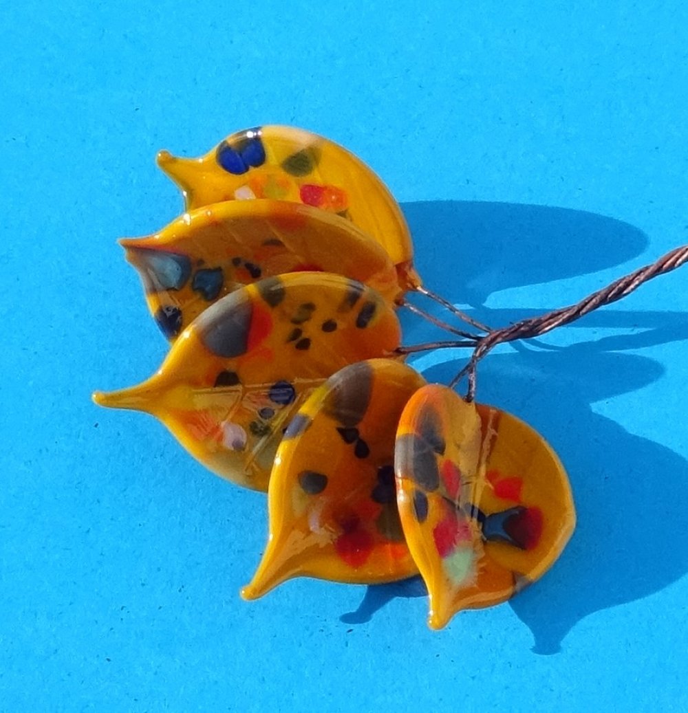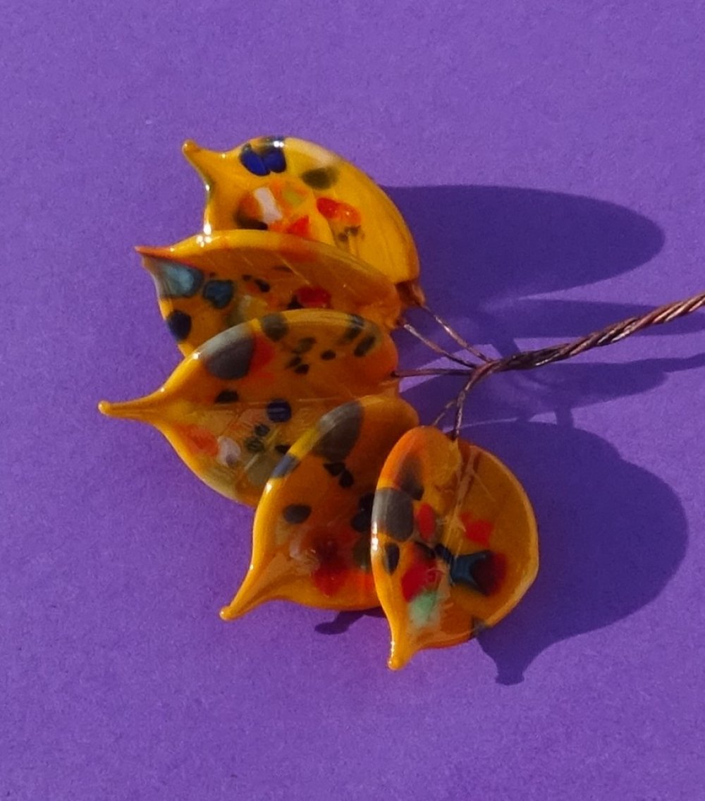 Bouquet de perles filées à la main par la créatrice, avec du verre importé de Murano (verre sodocalcique). Ce verre d'une qualité idéale présente une transparence incroyable: il est utilisé par les verriers d'art pour réaliser les plus belles pièces.