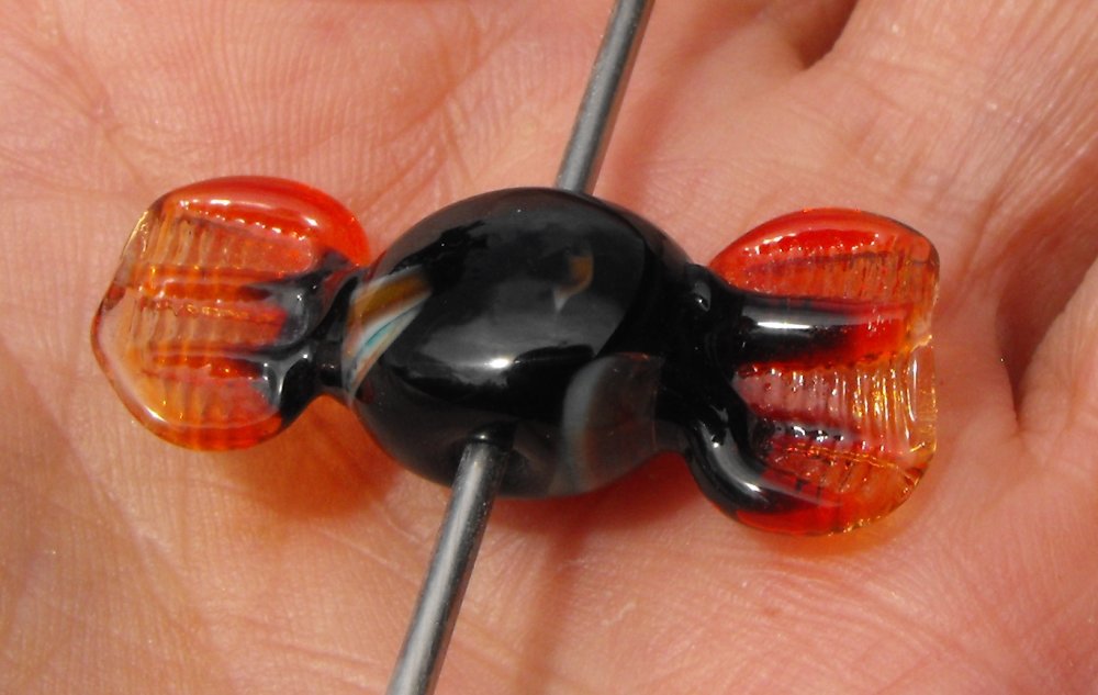Perle bonbon, percées de bas en haut