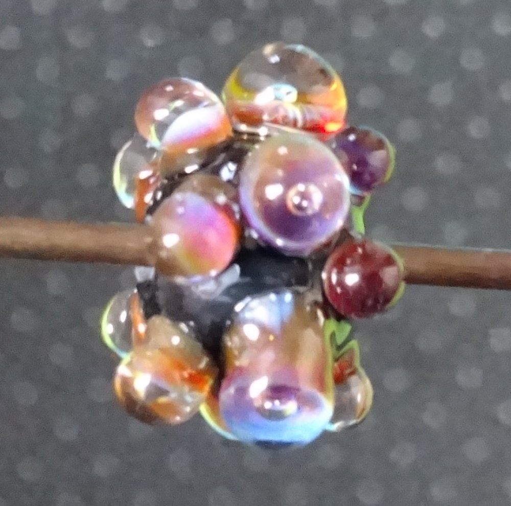 Bouquet de perles filées à la main par la créatrice, avec du verre importé de Murano (verre sodocalcique). Ce verre d'une qualité idéale présente une transparence incroyable: il est utilisé par les verriers d'art pour réaliser les plus belles pièces.