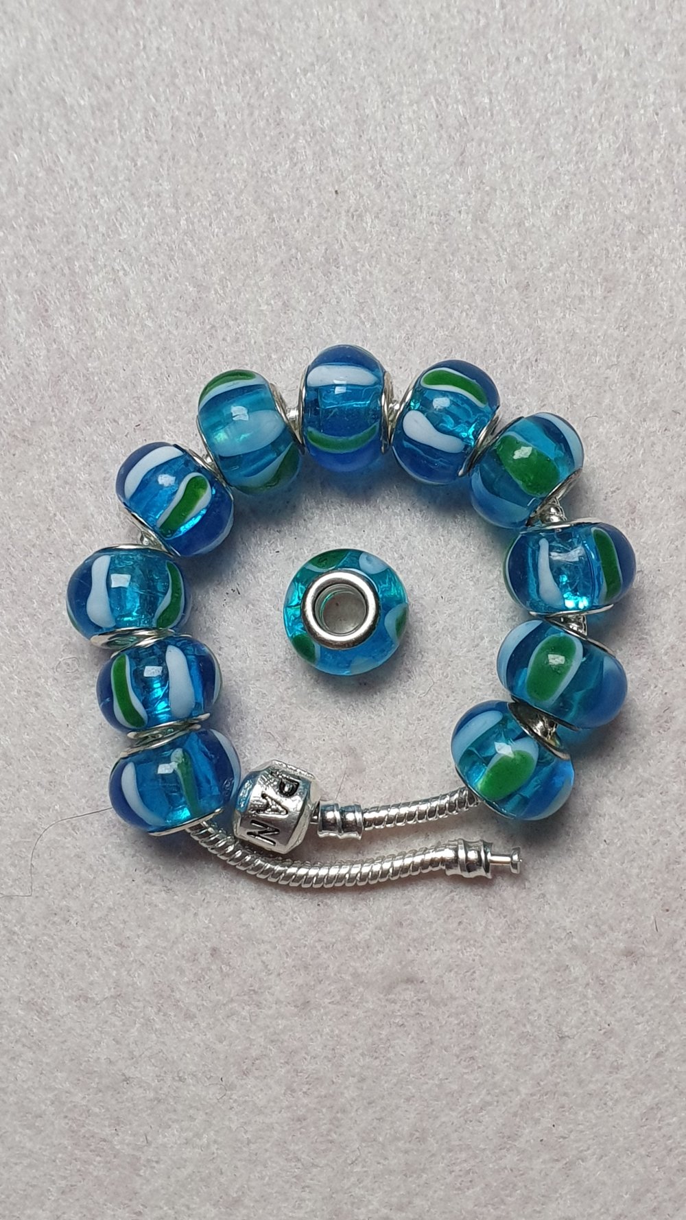 1 Perle charm blanc bleu 14x10.5mm verre