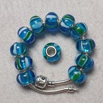 1 Perle charm blanc bleu 14x10.5mm verre trou de 5mm