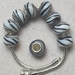 1 Perle charm blanc noir 13x10.5mm verre trou de 5mm