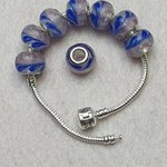1 Perle charm bleu rose 14x10.5mm verre trou de 5mm