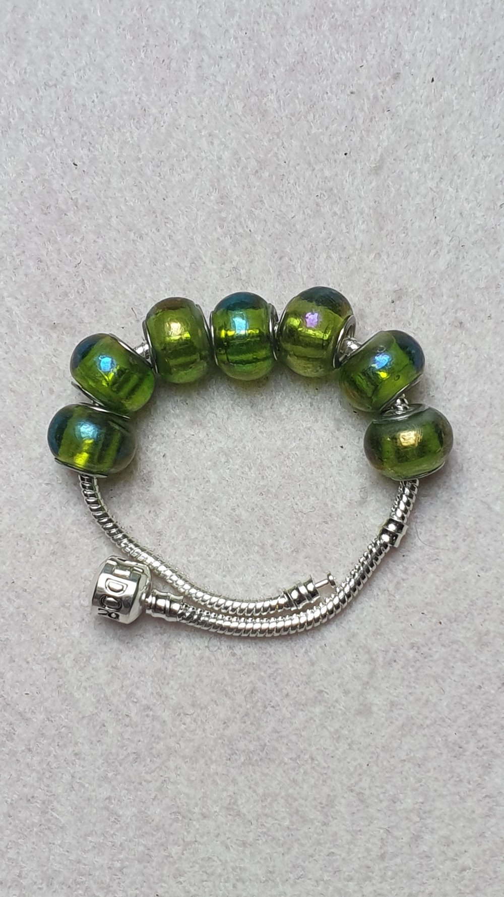 1 Perle charm vert reflet 14x10mm verre trou de 5mm