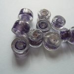 Je vous propose ce lot de 10 perles artisanales en verre bicolores (bleu et transparent) de forme ronde et cylindrique (tailles et formes différentes (7 mm x 10 mm pour la plus petite à 7 mm x 13 mm pour la plus grande)