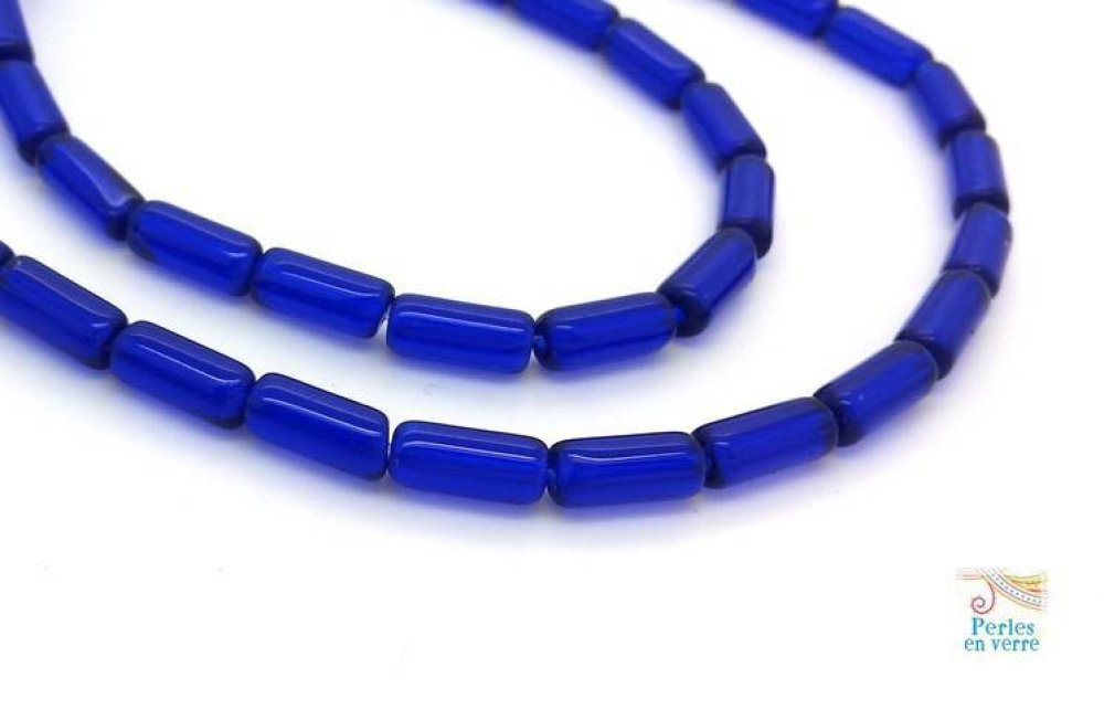 10 perles tubes en verre bleu foncé 4x9mm (pv691)