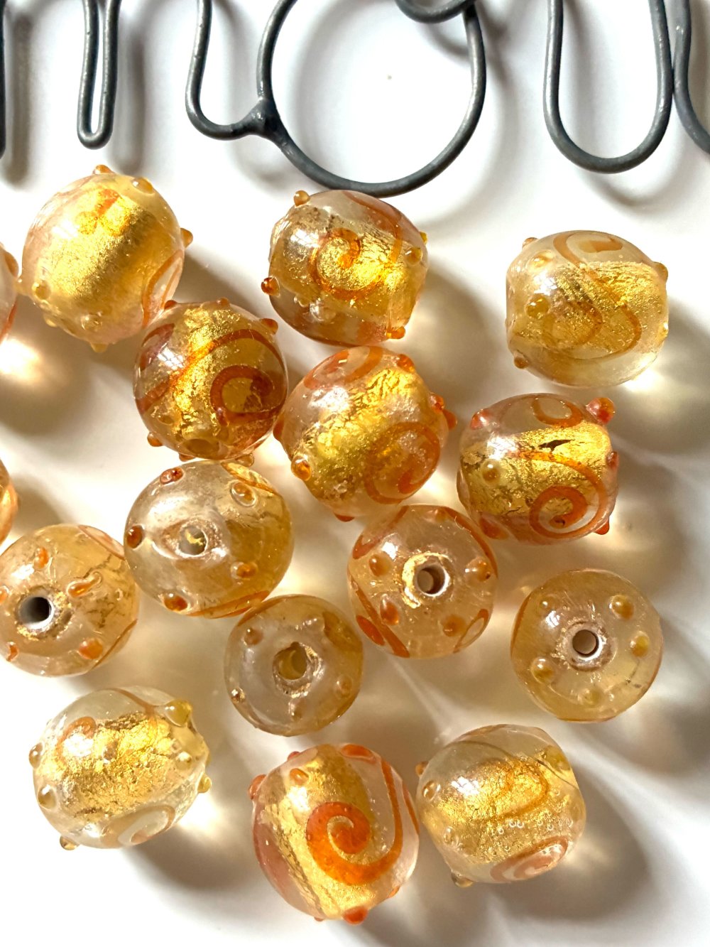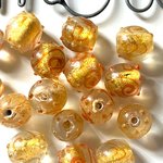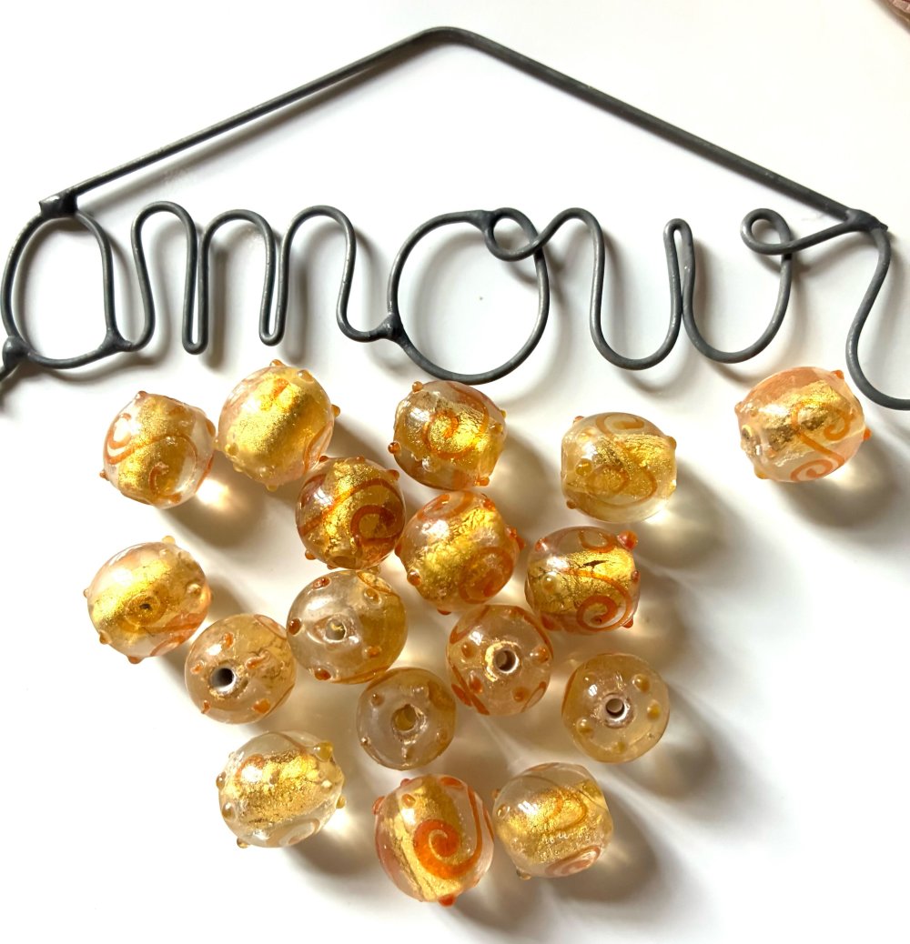 17 perles en verre rondes en doré et rouge