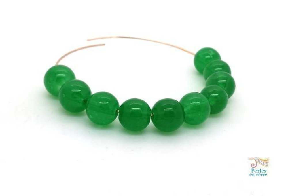 Vingt perles rondes en verre, très lumineuses, jolie couleur verte.