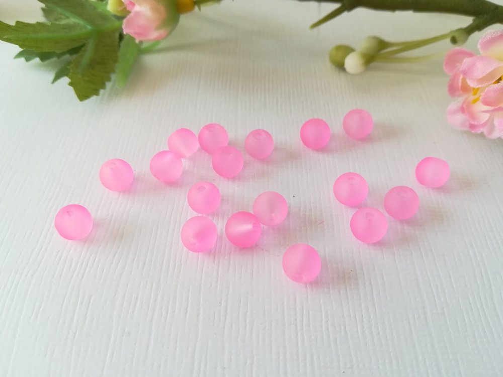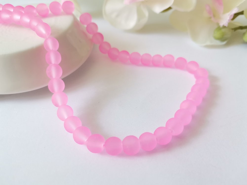 Perles en verre givrée 6 mm rose