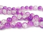 LOT DE 30 PIECES - CRACKLE BEADS - FORME RONDE - BICOLORES POURPRE / TRANSPARENT