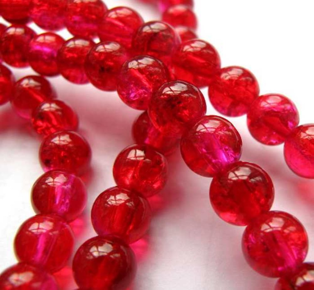 LOT DE 30 PIECES - CRACKLE BEADS - FORME RONDE - COULEUR ROUGE CLAIR