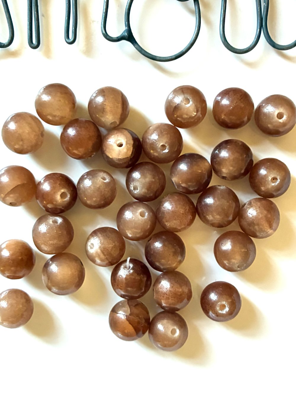 32 perles rondes en verre 1 cm de diamètre marron clair