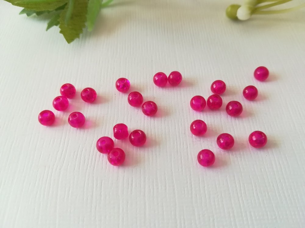 Perles craquelé 4 mm fuchsia