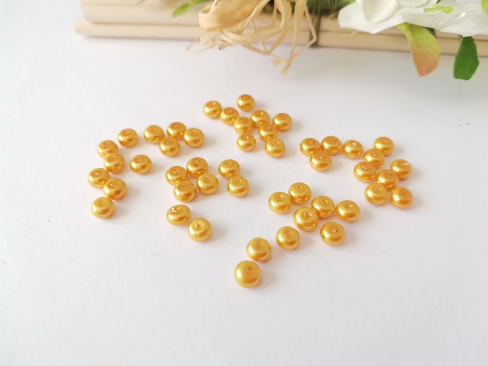 Perles en verre nacré rondelle 5 x 3 mm jaune ocre