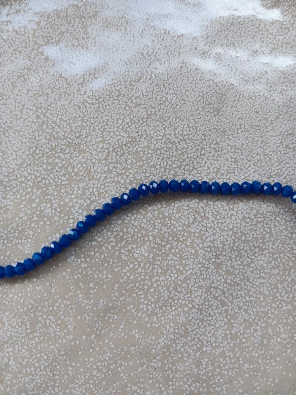 Un fil de perles rondelles à facettes bleues en verre.