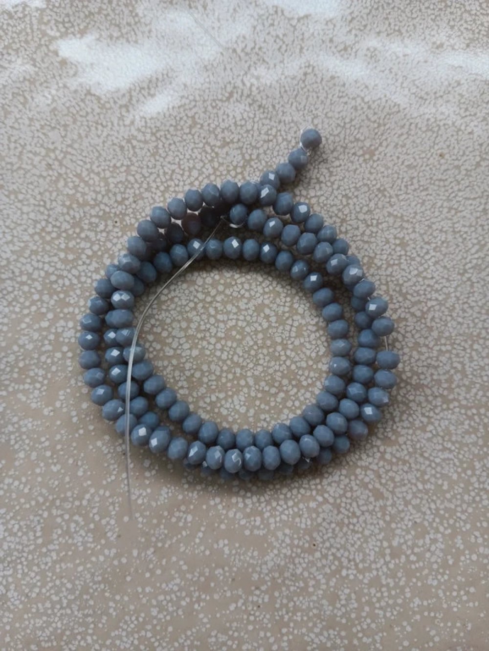 Un fil de perles rondelles à facettes grises en verre. Dimensions : 4x3mm - Fil de 130 perles