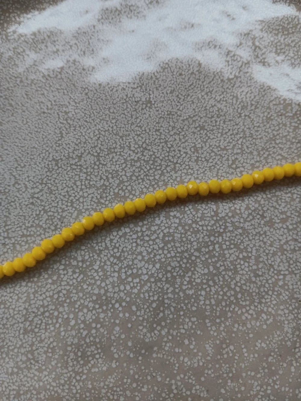 Un fil de perles rondelles à facettes jaunes en verre. Dimensions : 4x3mm - Fil de 130 perles