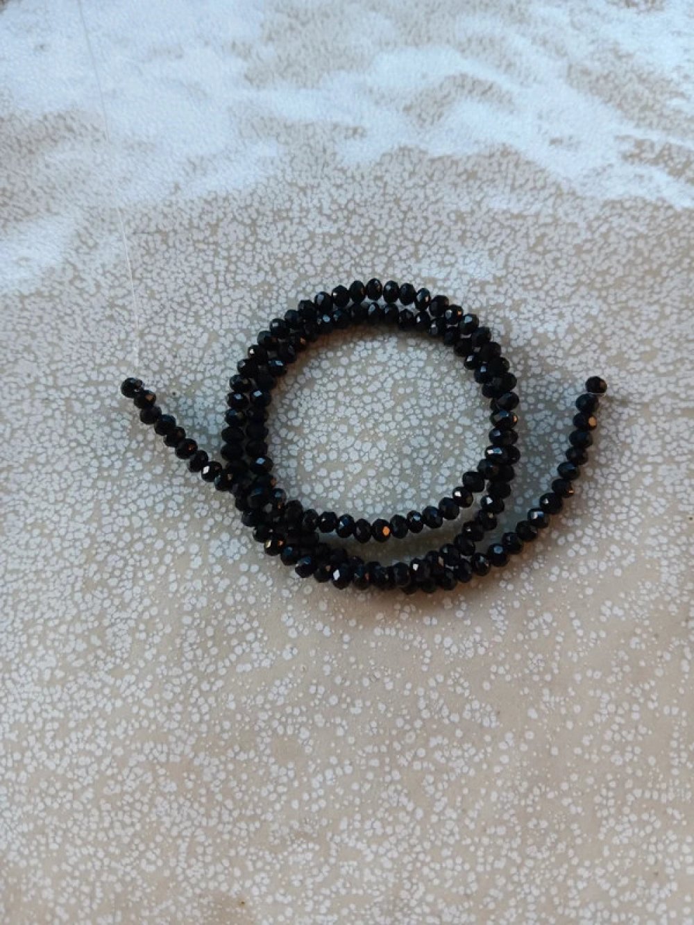 Un fil de perles rondelles à facettes noires en verre. Dimensions : 3x2mm - Fil de 130 perles