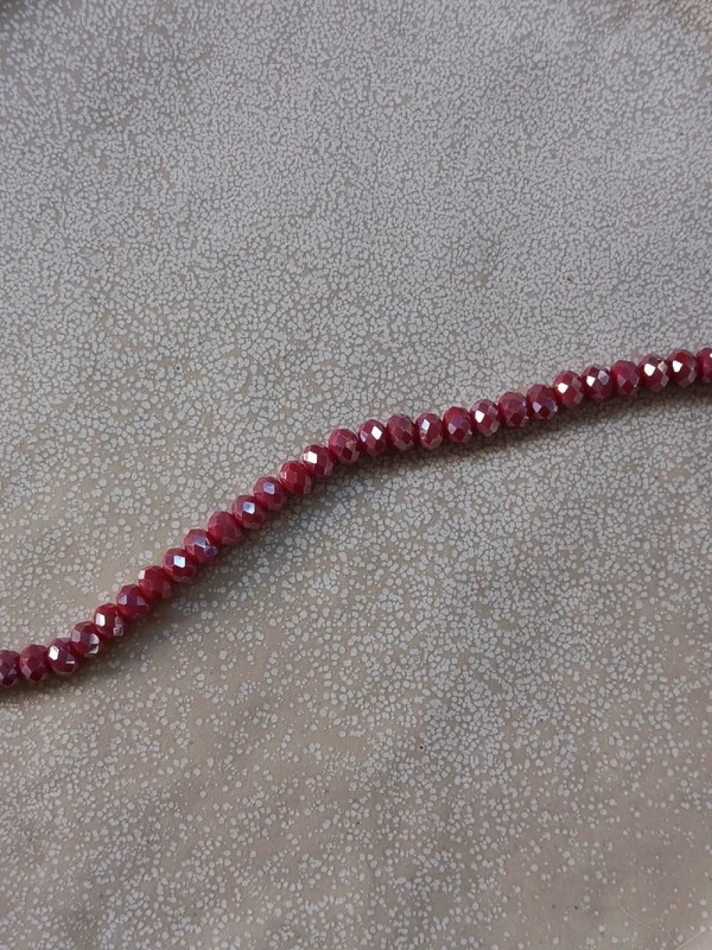 Un fil de perles rondelles à facettes rouges en verre. Dimensions : 6x4mm - Fil de 90 perles