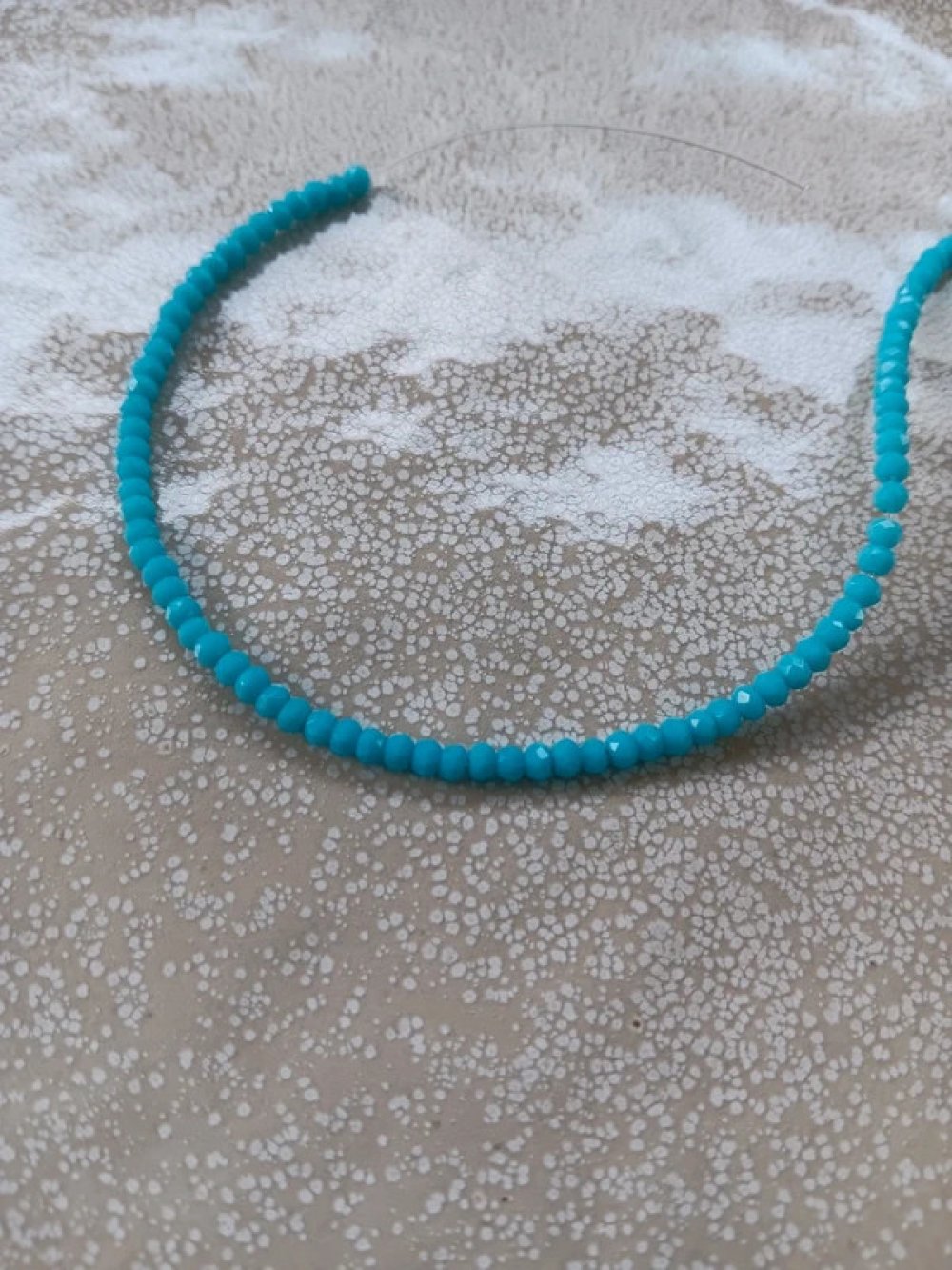 Un fil de perles rondelles à facettes turquoise en verre. Dimensions : 3x2mm - Fil de 130 perles