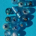 Bouquet de perles filées à la main par la créatrice, avec du verre importé de Murano (verre sodocalcique). Ce verre d'une qualité idéale présente une transparence incroyable: il est utilisé par les verriers d'art pour réaliser les plus belles pièces.
