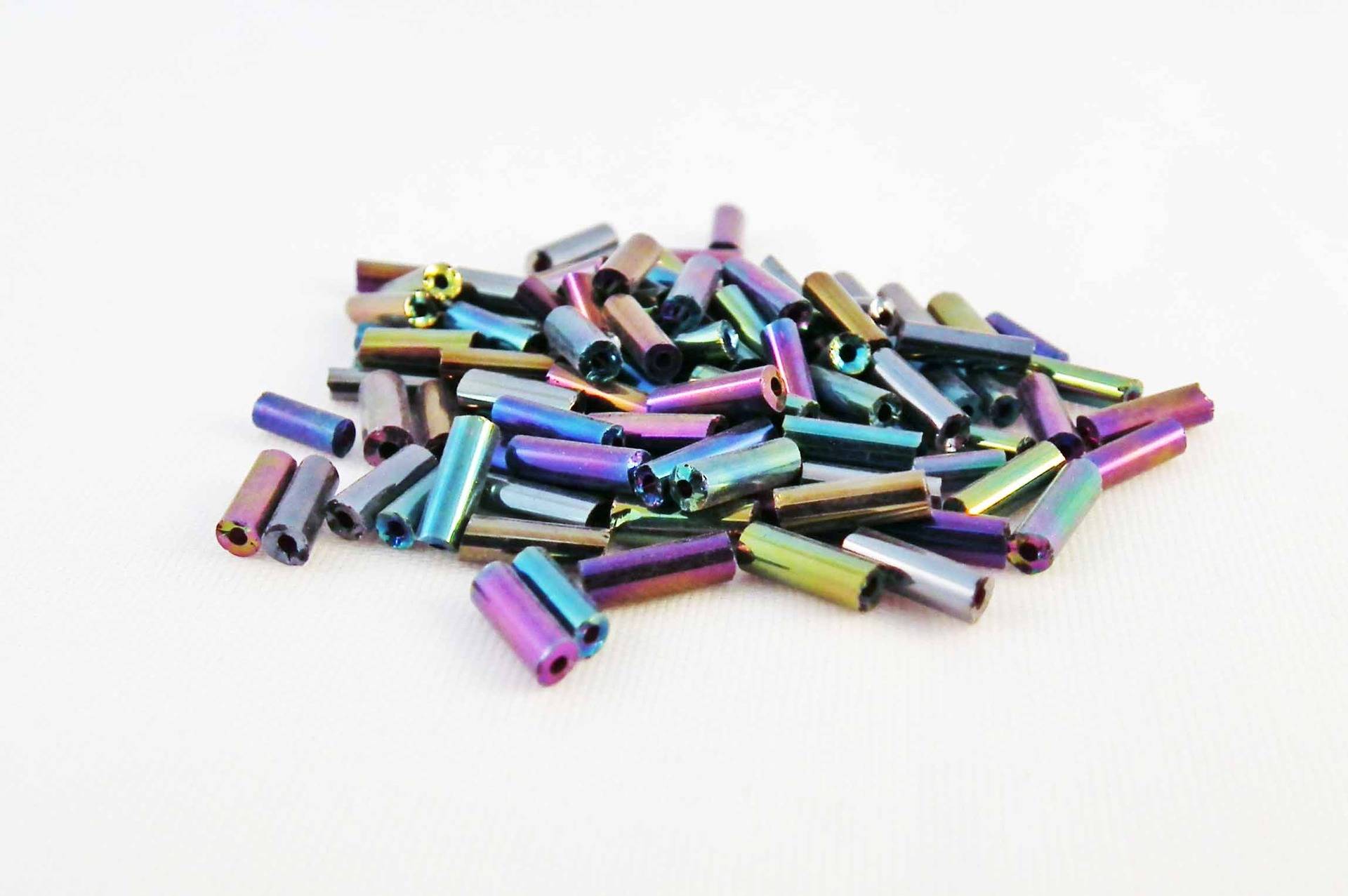 Lot de 18 grammes de Perles en Verre forme de Tubes Couleurs Mixtes Reflets Électriques