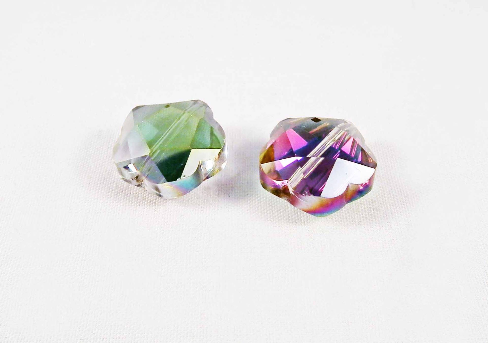 Lot de 2 Perles en Verre de Cristal Couleur Vert Jaune Kaki Vin Rouge à Reflets en forme de Fleur Trèfle, 14mm.